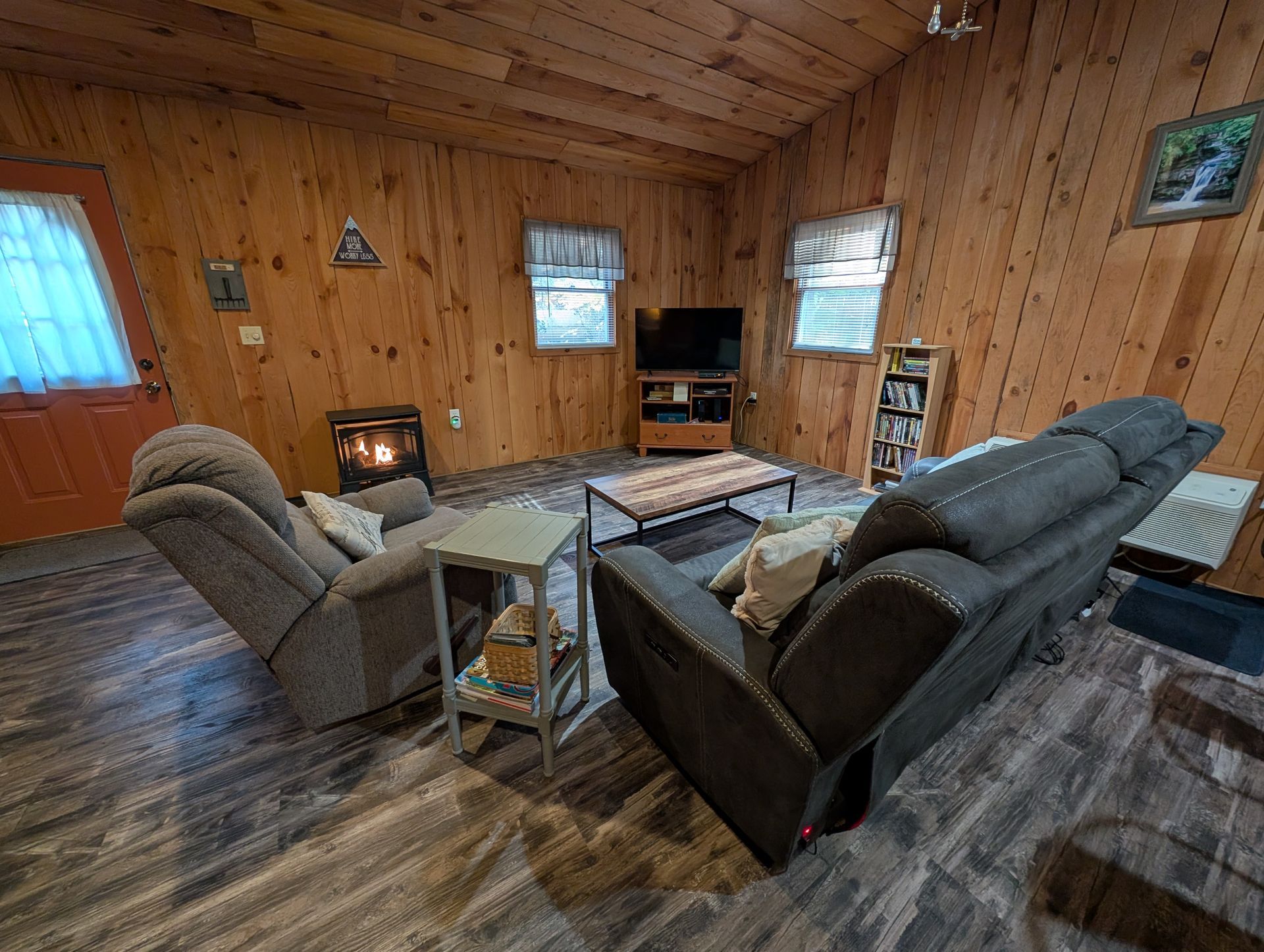 The Nest Cabin provides a relaxing, cozy getaway. The interior of the cabin is a quaint mix of rustic and chic. All of the walls and ceilings are knotty pine and give the interior a traditional cabin feel. Our hot tub rests on our covered back porch overlooking the wooded surroundings. Amenities include a fully equipped kitchen, spectrum wifi, outdoor fire pit, park style charcoal grill and full bathroom. The Nest is located close to all the Hocking Hills attractions including Old Man's Cave, Conkle's Hollow, Zip Lines, Winery and Antique Shops. We are only 4 miles from Boch Hollow hiking area, Hocking Hills Winery and grocery stores. The Nest is situated on 4 wooded acres. Great for a couples retreat or small family.
