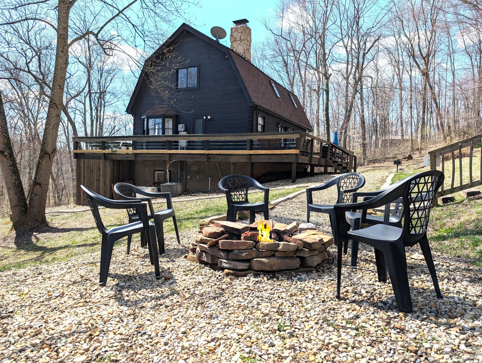 The Retreat at Wildcat Hollow is the perfect getaway experience. Resting peacefully on 6 acres, the cabin blends the rustic experience with modern amenities. The cabin features 3 bedrooms, additional sleeping room, 2 full baths, wood burning fireplace, two living rooms and awesome kitchen and dining area. Outside, the wrap around deck has great views and plenty of seating. The hot tub is perfectly placed under the deck, providing cover year-round. The property is a paradise ready to explore. Start at the fire pit, which is steps from the deck. Close by is the frog pond which is full of activity. A bit further into the woods you find the tree house, equipped with a deck, playroom and slide! Hike even further into the woods to find our camping cabin, offering a screened porch and cozy interior. Wow, you must see it to believe it!