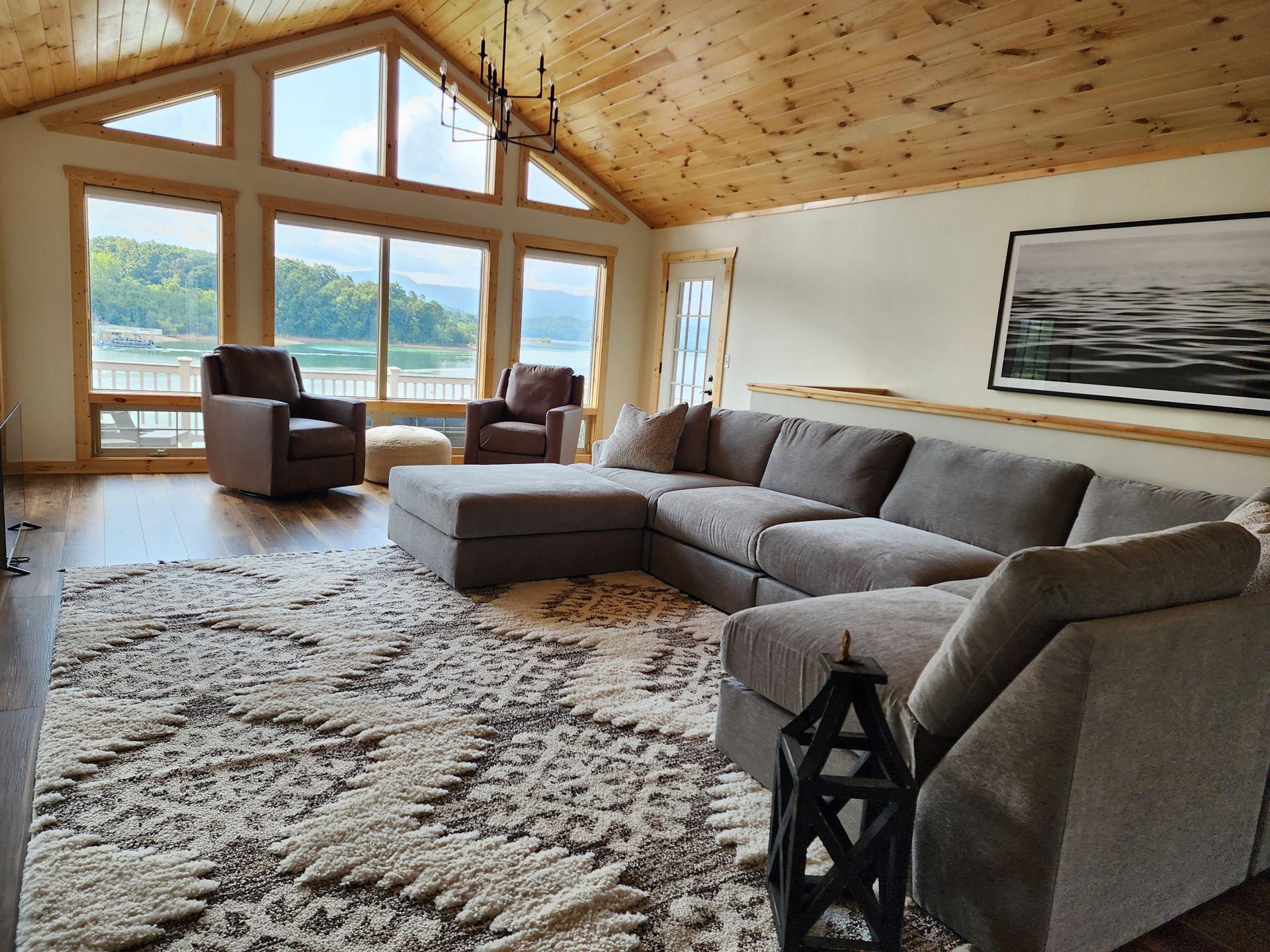 is a luxurious and cozy lakefront escape offering breathtaking mountain and water views. This spacious 4-bedroom, 3 full-bath retreat is perfect for families, friends, or couples looking to unwind in style. Wake up to serene lake views from the master suite, enjoy a morning coffee on the expansive deck, or take advantage of the private boat dock for a day on the water. With ample living space, modern amenities, and warm, inviting décor, Three Horizons Retreat is your ideal getaway for relaxation and adventure. Whether you're looking to explore the great outdoors or simply relax by the water, this retreat has it all! Located 40 minutes from Pigeon Forge, Dollywood and Gatlinburg.